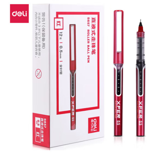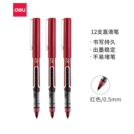 • 得力中性笔红色直液式走珠笔签字笔学生 笔12/支盒办公笔0.5mm s657